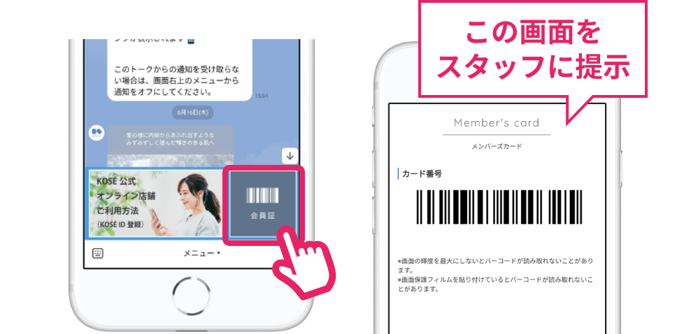 ※KOSÉメンバーズカード(LINE会員証)を店頭で登録頂いたお客様がご利用いただけます。